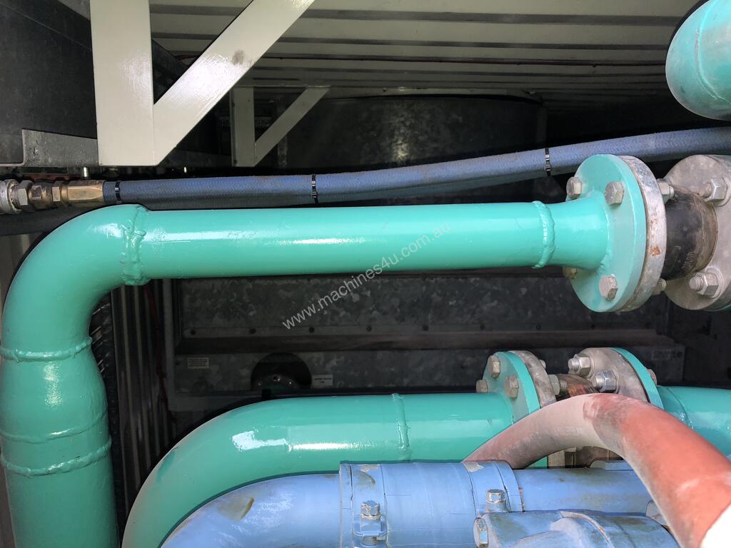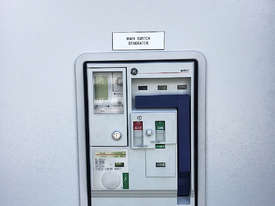 Engine and alternator mounted on a substantial base. Installed in a modified 40’ shipping container per the industry standard. Roof-mounted exhaust silencer with internal flexible connections. 2 x heavy duty 24V battery packs with isolators. Automatic battery charger 24V. Internal 1000L fuel tank with 200L sight graduations. Generator control panel with automatic remote/manual start. REN lubricating oil monitor. 2000 Amp adjustable ACB 3 pole